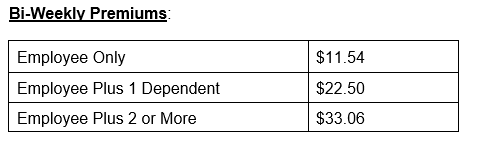 Major benefits including surgical extractions, crowns, bridges, partials & dentures covered at 50% after one year (one year waiting period).