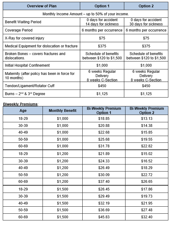 PROTECTS your most valuable asset...your ability to earn an income. PROVIDES an income...when you are disabled due to a sickness or accidental injury on or off the job. PAYS cash benefits directly to you...when you are disabled.