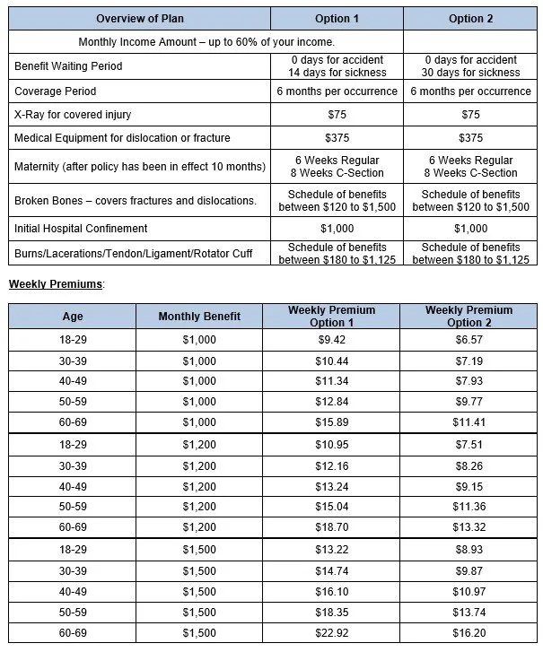 PROTECTS your most valuable asset...your ability to earn an income. PROVIDES an income...when you are disabled due to a sickness or accidental injury on or off the job. PAYS cash benefits directly to you...when you are disabled.