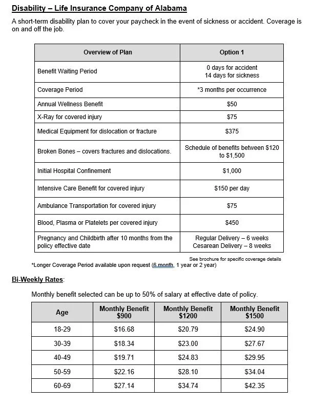Provides 1st Day Coverage for Accidents and 15th Day for Sickness